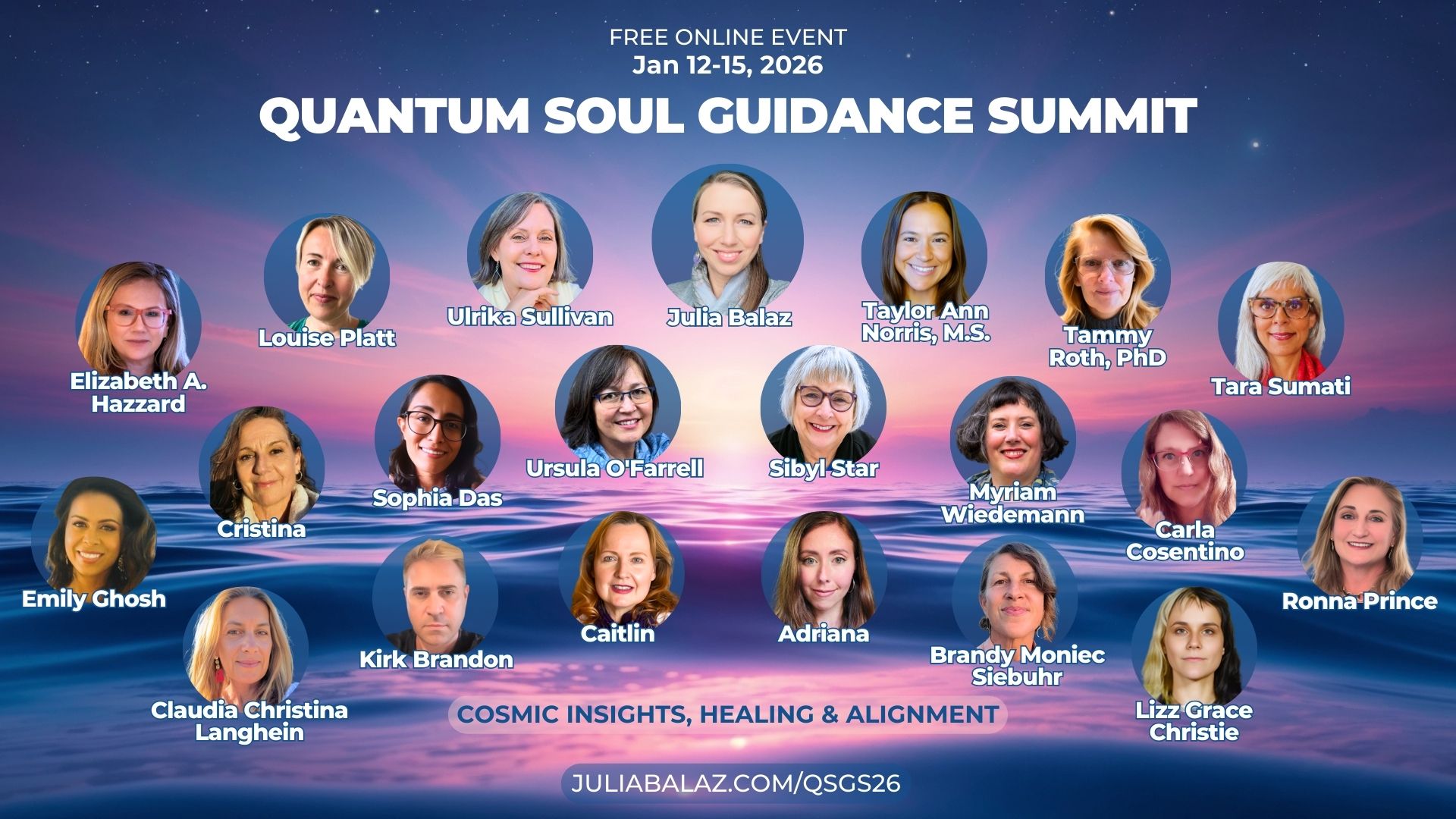 Ich freue mich sehr vom 12. – 15.1.2026 als Sprecherin beim Quantum Soul Guidance Summit 2026 mitzuwirken, wo Referenten aus aller Welt wertvolle und praxisnahe Einblicke in die Galaktische Astrologie und die persönliche Transformation geben! 💫